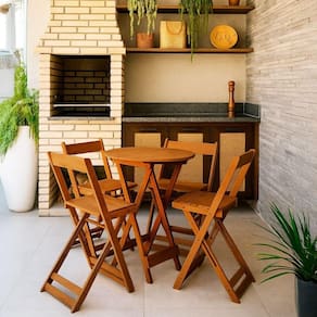 O Kit Bistrô Dobrável com 4 Banquetas em Madeira Pinus é a solução perfeita para quem quer unir charme e funcionalidade em ambientes compactos ou descontraídos. Com um design rústico e natural, é ideal para varandas, áreas gourmet, cozinhas , bares ou espaços comerciais.