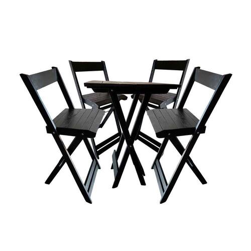 Kit Bistrô Eucalipto Dobrável Com 4 Banquetas De Madeira Preto
