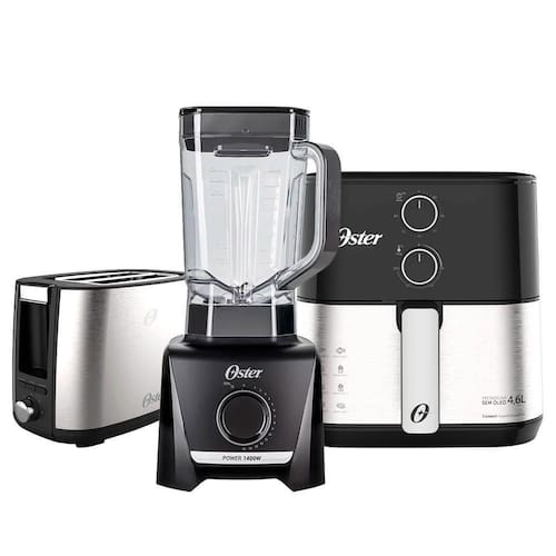 Kit Culinário Oster Completo: Fritadeira Inox Compact + Liquidificador 1400 Full + Torradeira Inox Simple Life Cozinhe com Estilo e Eficiência!