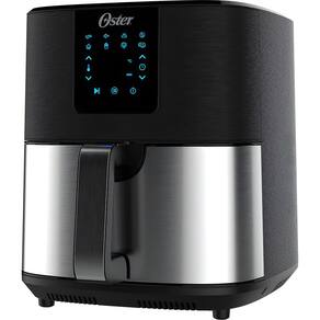 Kit Oster com Fritadeira Ultra Digital 4,8L (OFRT650) com painel touch, 8 funções pré-programadas, temperatura de 40°C a 200°C, função desidratar e 1500W de potência; e Blender Power Inox (OBLD750) com 2 jarras To Go (600ml tritan e 475ml inox), 4 lâminas em aço inox e 700W de potência.Porta-fio