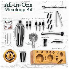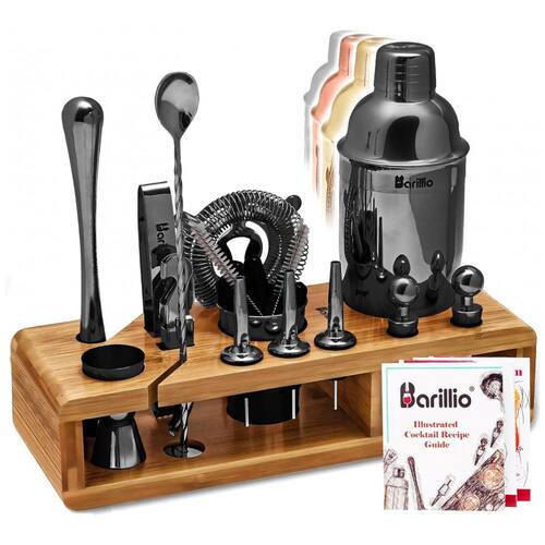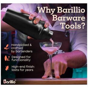 O KIT BARILLIO BLACK BARTENDING RESPONDE A TODAS AS SUAS NECESSIDADES Fornecemos os acessórios de bar domésticos mais essenciais que você precisa para misturar deliciosos coquetéis sem confusão ou bagunça, além de um impressionante suporte de bambu africano. Chegou a hora de você servir seus convidados com estilo SUPORTE DE BAMBU DE DESIGN LINDO PARA ZENAMENTO DE FERRAMENTAS DE BARRA Além de sua aparência deslumbrante, seu design patenteado apresenta amassados designados e divisória de madeira, tornando o o porta ferramentas de barra mais espesso, estável e sólido. ACABAMENTO DE ESPELHO IMPRESSIONANTE A lata do shaker bartender banhado a preto é engrossada para garantir que não quebre, dobre ou enferruje. Trate bem o seu conjunto de ferramentas de bar preto lavando à mão com água morna e sabão e ele durará anos. À PROVA DE FERRUGEM Nosso kit coquetel preto foi projetado para ser prático e elegante, mas durável o suficiente para uso diário. Portanto, ao contrário de itens essenciais de bar semelhantes que enferrujam facilmente, este conjunto de coquetel é feito de aço inoxidável de alta qualidade SS304