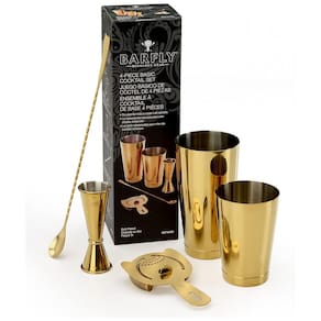CONSTRUÇÃO DE QUALIDADE Trabalhada com aço inoxidável resistente banhado a ouro para manter a forma, esconder o desgaste e ter um desempenho consistentemente bom, mantendo uma aparência refinada. ESSENCIAIS DE BARWARE Um conjunto conveniente para fornecer os principais componentes para uma configuração básica de barra, inclui os grampos necessários para cada bn. FÁCIL DE LIMPAR Para maximizar o desempenho e a longevidade de seus produtos Barfly, recomenda se lavar as mãos com sabão neutro e água morna. Evite detergentes que contenham alvejante ou cloração pesada. EQUIPAMENTO DE MIXOLOGIA BARFLY Barware fino para o bn profissional ou o entusiasta em casa Barfly tem todas as ferramentas necessárias para ajudar a criar o coquetel perfeito