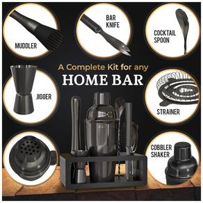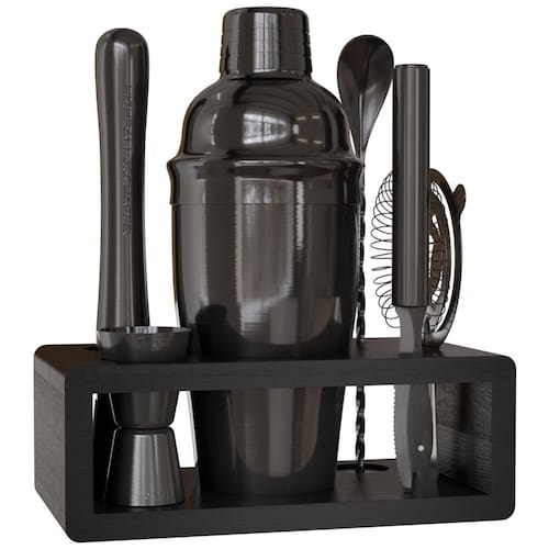 CONJUNTO DE BARRAS SIMPLES O conjunto de elite é a escolha para iniciantes que querem aprender a fazer ótimos drinks. Ele vem com uma coqueteleira de que é fácil de remover e à prova de vazamentos. Todas as ferramentas de bn são de aço inoxidável e laváveis. DURAR PARA TODA A VIDA Nossos suprimentos de barra são testados repetidamente para garantir que durem por anos de uso. Com nossa liga de aço inoxidável resistente, este barware não enferruja. FERRAMENTAS INCLUÍDAS Este kit de barra vem com as seguintes ferramentas de barra gravadas a laser Muddler, colher de bar, agitador de sapateiro, coador de espinheiro, jigger, faca de bar e suporte de bambu preto. Todos os acessórios de bar maravilhosos. SUPORTE À PROVA DE MANCHA O suporte de bambu preto resistente que contém nossos acessórios de álcool é feito de bambu real. Coberto com uma tinta à prova de água, este suporte permanecerá em pé por muito tempo. PRESENTE PENSADO Elegante em seu design, é um presente maravilhoso para qualquer festa de coquetel que você participe. Certamente para impressionar seus amigos com seu gosto impecável em design. Este conjunto de bn vem em uma caixa de presente projetada, não em uma caixa branca comum