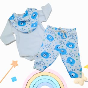 O kit Body Like On é um conjunto de roupas infantis composto por um body, uma calça e uma bandana babador. A composição do tecido é especialmente pensada para garantir conforto e durabilidade, sendo 70% algodão e 30% poliéster.