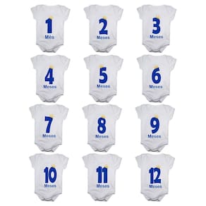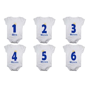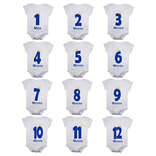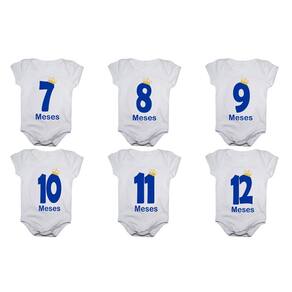 Kit body bebê mesversario manga curta estampa números menino 12 bodies 1 a 12 meses - Único - Branco