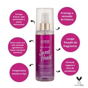 Melhor do que sair perfumada é poder carregar sua fragana predileta com você. A linha de Body Splash da Kiss New York entrega frescor, pele perfumada e ativos hidratantes, que deixam a pele com uma sensação agradável ao toque a qualquer momento. Seu momento de autocuidado pode ser quando você quiser basta levá-lo na bolsa ou mochila e reaplicar ao longo do dia.Fórmula vegana, livre de parabenos e não testada em animais.