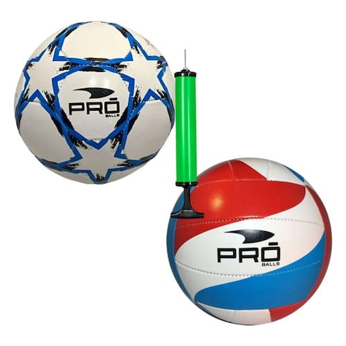 Kit Bola de Vôlei + Bola de Futebol + Bomba - Cores Garanta diversão garantida com o Kit Esportivo, composto por uma bola de vôlei, uma bola de futebol e uma bomba para enchimento Ideal para crianças e adultos que adoram praticar esportes ao ar livre ou em quadras. Benefícios do Produto - Kit completo - inclui duas bolas e bomba para inflar. - Diversão garantida - ideal para praia, campo e quadra. - Material resistente - bolas leves e duráveis. - Cores - enviadas conforme disponibilidade. O que acompanha o kit - 1 Bola de Vôlei - 1 Bola de Futebol - 1 Bomba de ar Especificações Técnicas - Material: Borracha sintética. - Tamanho: Padrão recreativo. - Indicação: Uso casual e recreativo. - Cores: Enviadas conforme disponibilidade em . 1. As bolas vêm infladas - Não, elas são enviadas vazias, mas acompanham uma bomba para enchimento. 2. Qual o tamanho das bolas - As bolas possuem tamanho recreativo, ideais para lazer e práticas esportivas casuais. 3. Posso escolher a cor das bolas - Não, as cores são e enviadas conforme disponibilidade em . 4. O material das bolas é resistente Sim, são feitas de borracha sintética de qualidade, proporcionando maior durabilidade. Marca: Não Informado