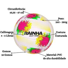 Kit 01 Bola de Vôlei Rainha Sunny + 01 Rede Vôlei Master Rede Seda 5M 1 Faixa Sintética.