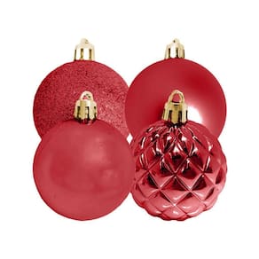 Kit bolas de natal 8cm vermelhotexturas com 4 unidades multiart tamanho: 8x8cm cor: vermelho textura: brilho, fosca, glitter e pinha marca: multiart atenção: imagem meramente ilustrativa. Pode ocorrer mudanças no tom da cor para o produto real ou mudanças na embalagem sem aviso prévio por parte do fornecedor/fabricante