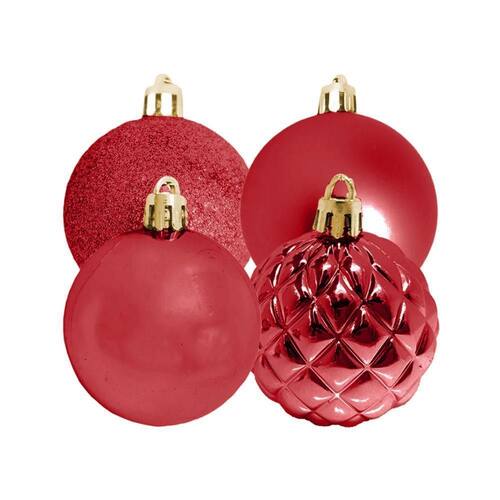 Kit bolas de natal 8cm vermelhotexturas com 4 unidades multiart tamanho: 8x8cm cor: vermelho textura: brilho, fosca, glitter e pinha marca: multiart atenção: imagem meramente ilustrativa. Pode ocorrer mudanças no tom da cor para o produto real ou mudanças na embalagem sem aviso prévio por parte do fornecedor/fabricante