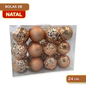 Além de serem clássicas, trazem mais beleza para a casa e proporcionam o verdadeiro espírito natalino. -As bolinhas tem diferentes tons e texturas, todas em Rose Gold.
