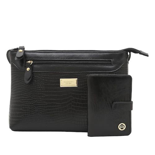 O Kit Bolsa Couro Transversal 2193MRT e Carteira 237MRT é uma ótima sugestão para renovar os conceitos de elegância e praticidade aos dias das mulheres de fino trato. Confeccionada em couro de espessura média, combina elementos clássicos e toques modernos para destacar a composição em diversas situações urbanas. Conhecendo o modelo: Bolsa Couro Transversal Mariart 2190MRT Corpo: Construção em couro de espessura média e acabamento tipo croco italiano. Forro em sarja engomada produzida em blend de poliéster e algodão. Logomarca aplicada com placa metálica. Fechamento: Zíper em poliéster de tramas levemente espaçadas para melhor lacre. O cursor em metal ZAMAC que corre macio nos dentes e não enferruja. Parte externa: Bolso nas frente da bolsa que pode ser utilizado para acomodar aparelhos celulares, por exemplo. Alças: Alça transversal com reforço interno com recouro e seis níveis de regulagem que vai de 1,20m a 1,35m. Parte interna: Bolso saque rápido indicado para chaves e celulares. Bolso com fechamento em zíper para acomodar itens mais valiosos. Fundo: Base firme para melhor estabilidade em superfícies. O que cabe Celular, pertences pequenos molho de chaves, fones de ouvido , nécessaire de higiene pessoal, estojo de maquiagem. Dependendo do tamanho não cabem todos os itens acima de uma vez. O que não cabe Notebooks, guarda-chuvas grandes, livro, caderno universitário, malha para os dias de frio, tablet, squeeze ou qualquer pertence considerado de médio pra grande. Recomendações de uso: Perfeita para o uso diário, como por exemplo, ir ao mercado ou curtir um happy hour com os amigos Como conservar o couro da sua bolsa: Para eliminar sujeiras leves recomendamos usar pano umedecido com sabão neutro. Dimensões: 26 x 18 x 05 cm comprimento x altura x largura Material: couro lezard Origem: nacional; feita por mãos brasileiras Conhecendo o modelo: Carteira Couro Mariart 237MRT Corpo: Construção em couro firme de espessura média para maior durabilidade. Forro misto de poliéster e algodão. Logomarca prensada em relevo na parte interna. Fechamento: Haste com botão . Parte interna: Dois bolsos livres para cédulas dobradas. Três slots para cartões que comportam até 6 unidades considerando utilizar 2 cartões por slot . Núcleo de PVC para acomodar documentos como RG, CNH e título de eleitor. Parte externa: Logo metálico dourado aplicado na parte frontal. O que cabe RG, CNH, título de eleitor, documento veicular, cartões, cédulas dobradas. O que não cabe Passaporte, carteira de vacinação, certidão de nascimento, talão de cheque, moedas. Recomendações de uso: Ótima para transportar em bolsas pequenas, pochetes e bolsos de casacos. Cuidados com o couro: Para fazer a limpeza do couro utilize um pano úmido com sabão neutro. Não usar substâncias abrasivas, nem qualquer prática de lavagem. Dimensões: 12,5 x 09 x 02 cm comprimento x altura x largura Material: couro Origem: nacional; feita por mãos brasileiras