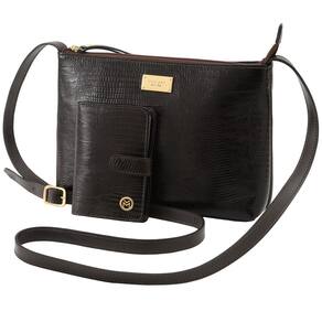 O Kit Bolsa Couro Transversal 2190MRT e Carteira 237MRT é uma ótima sugestão para inspirar charme e praticidade ao dia a dia da mulher. Confeccionada em couro lezard de espessura média, combina elementos clássicos e toques modernos para destacar a composição em diversas situações urbanas. Conhecendo o modelo: Bolsa Couro Transversal Mariart 2190MRT Corpo: Construção em couro de espessura média e acabamento lezard. Forro em sarja engomada produzida em blend de poliéster e algodão. Logomarca aplicada com placa metálica. Fechamento: Zíper em poliéster de tramas levemente espaçadas para melhor lacre. O cursor em metal ZAMAC que corre macio nos dentes e não enferruja. Parte externa: Bolso nas costas da bolsa que pode ser utilizado para acomodar aparelhos celulares, por exemplo. Alças: Alça transversal com reforço interno com recouro e seis níveis de regulagem que vai de 1,20m a 1,35m. Parte interna: Bolso saque rápido indicado para chaves e celulares. Bolso com fechamento em zíper para acomodar itens mais valiosos. Fundo: Base firme para melhor estabilidade em superfícies. O que cabe Celular, pertences pequenos molho de chaves, fones de ouvido , nécessaire de higiene pessoal, estojo de maquiagem. Dependendo do tamanho não cabem todos os itens acima de uma vez. O que não cabe Notebooks, guarda-chuvas grandes, livro, caderno universitário, malha para os dias de frio, tablet, squeeze ou qualquer pertence considerado de médio a grande. Recomendações de uso: Perfeita para o uso diário, como por exemplo, ir ao mercado ou curtir um happy hour com os amigos Como conservar o couro da sua bolsa: Para eliminar sujeiras leves recomendamos usar pano umedecido com sabão neutro. Dimensões: 26 x 18 x 05 cm comprimento x altura x largura Material: couro lezard Origem: nacional; feita por mãos brasileiras Conhecendo o modelo: Carteira Couro Mariart 237MRT Corpo: Construção em couro firme de espessura média para maior durabilidade. Forro misto de poliéster e algodão. Logomarca prensada em relevo na parte interna. Fechamento: Haste com botão . Parte interna: Dois bolsos livres para cédulas dobradas. Três slots para cartões que comportam até 6 unidades considerando utilizar 2 cartões por slot . Núcleo de PVC para acomodar documentos como RG, CNH e título de eleitor. Parte externa: Logo metálico dourado aplicado na parte frontal. O que cabe RG, CNH, título de eleitor, documento veicular, cartões, cédulas dobradas. O que não cabe Passaporte, carteira de vacinação, certidão de nascimento, talão de cheque, moedas. Recomendações de uso: Ótima para transportar em bolsas pequenas, pochetes e bolsos de casacos. Cuidados com o couro: Para fazer a limpeza do couro utilize um pano úmido com sabão neutro. Não usar substâncias abrasivas, nem qualquer prática de lavagem. Dimensões: 12,5 x 09 x 02 cm comprimento x altura x largura Material: couro Origem: nacional; feita por mãos brasileiras