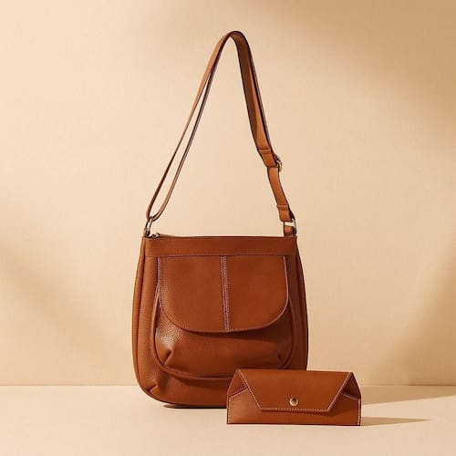 Kit Bolsa E Porta óculos Topgrife Couro Cor Caramelo Tamanho único