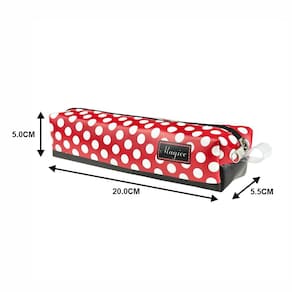 O estojo é feito em material sintético, com alcinhas laterais. Seu fechamento é com zíper.