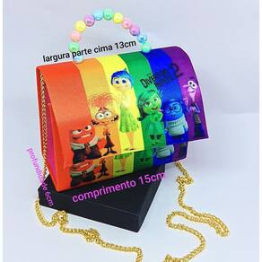 Material Principal: Couro PU Forro: Poliéster Número de Alças: Única Decoração: Impressão de desenho animado do filme Divertidamente Estilo: Casual Gênero: Meninas Idade Recomendada: 4 a 10 anos Tamanho: 15 x 13 x 6 cm Peso: 200g Abertura: Botão de Imã
