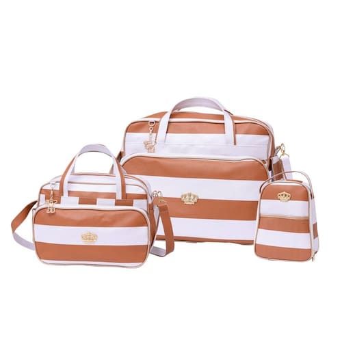Kit bolsa maternidade 3 peças modelo: precious medidas bolsa Grande: 32 cm de altura x 45 cm de Largura x 24 cm de espessura medidas bolsa menor: 20 cm de altura x 27 cm de largura x 12 cm Frasqueira térmica confeccionada em material sintético alça de mão dupla e alça de ombro removível apenas de 1 lado na bolsa e frasqueira frasqueira média possui 01 bolso frontal com fechamento em tiras aderentes e 2 bolsos laterais porta mamadeira alças ajustáveis kit é impermeável tecido interno napa sarja fabricado no Brasil Marca: Não Informado