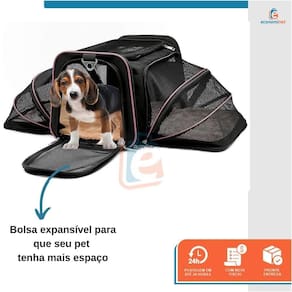 - Bolsa expansível para que seu pet tenha mais espaço; - Confeccionada nas especificações para embarque na cabine de aviões da maioria das companhias aéreas; - Acomoda confortavelmente pets de até 14kg; - Aberturas frontal e lateral que facilitam a entrada e saída do pet; - Fundo interno rígido removível, fácil de higienizar; - Alta qualidade de fabricação e detalhe; - Super arejada, confeccionada com tela de alta resistência nas laterais e topo; - Totalmente dobrável e fácil de guardar.
