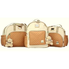 Kit bolsas bebe maternidade elegance enxoval miellu bolsas - g, m, mochila e trocador Cor: caramelo Kit maternidade desenvolvido pela miellu com a finalidade de proporcionar conforto, qualidade, estilo, durabilidade e praticidade. Projetado para aliar resistência com leveza, pois na maternidade carregamos muitas coisas, então precisamos de bolsas resistentes, mas também precisamos de bolsas leves, pois de peso já basta o que carregamos para o bebê... = Saiba mais sobre esse kit abaixo: Descrição bolsas Exterior - fabricada em material sintético antialérgico externamente, material que não descasca e de fácil limpeza; - alças reforçadas com fita cadarço de alta resistência para aguentar o peso da bolsa quando cheias; - matelasse no bolso frontal e nos bolsos laterais; - bolsos laterais dos dois lados para facilitar o dia-a-dia; - ferragens em dourado com fecho na alça maior para retirar, caso não deseje utilizar a alça de ombro, basta desconectar em um dos lados e guardar no bolso lateral Interior - forrada com bagum branco no fundo e nylon resinado no restante da peça, garantindo higiene, facilidade de limpeza e durabilidade por se tratar de nylon; - porta mamadeira térmico embutido, mais praticidade do que porta mamadeira a parte que se torna mais uma peça para carregar e dificultar o dia-a-dia com o bebê e proteção para a mamadeira, pois ela fica protegida dentro da peça, livre de poeira e sujeira; - repartição no interior para facilitar a organização ------------------------------------------------------ Descrição mochila Mochila maternidade desenvolvido pela miellu com a finalidade de proporcionar conforto, qualidade, estilo, durabilidade e praticidade Ideal para passeios e para o dia-a-dia com o bebê, pois nos deixa com as mãos livres para lidar com o bebe e com as situações do dia-a-dia... Saiba mais sobre esse modelo que vai facilitar muito sua rotina com o bebê: Exterior - fabricada em material sintético antialérgico externamente, material que não descasca e de fácil limpeza; - alças com reforço em cadarço para aguentar o peso e forradas com material macio para garantir conforto; - bolsos laterais para facilitar o dia-a-dia; - bolso frontal e lateral com detalhes em matelasse; - ferragens em dourado; - bolso traseiro para colocar os artigos necessarios para a troca, com repartição para o trocador Interior - forrada com bagum branco no fundo e nylon resinado no restante da peça, garantindo higiene, facilidade de Limpeza e durabilidade por se tratar de nylon; - porta mamadeira térmico embutido, mais praticidade do que porta mamadeira a parte que se torna mais uma peça para carregar e dificultar o dia-a-dia com o bebê e proteção para a mamadeira, pois ela fica protegida dentro da peça, livre de poeira e sujeira; - reparticão no interior para facilitar a organização ---------------------------------------------------------- Trocador Trocador portátil para ser carregado dentro da bolsa do bebê, sem ocupar muito espaço, fabricado em plástico laminado branco brilhoso que pode ser facilmente limpo, com travesseiro para a cabeça do bebê. Dimensões das peças que compoem esse kit: Bolsa grande 40cm de largura 28cm de altura 19cm de profundidade Bolsa média 31cm de largura 27cm de altura 15cm de profundidade Mochila maternidade: - 30 cm largura - 32 cm altura - 16cm profundidade Trocador portátil 68cm de altura 27cm de largura As 3 bolsas são equipadas com porta mamadeira térmico embutido Acompanha 2 ursos pelúcia de 8cm Produto direto de fabrica, com de 90 dias Produto nacional