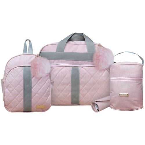 - A Bolsa Grande tem bolsos laterais, bolso frontal com zíper e fechamento principal em zíper.
