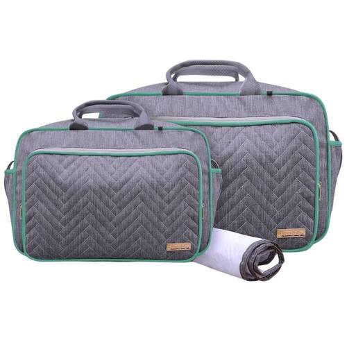 - A Bolsa Grande tem bolsos laterais, bolso frontal com zíper e fechamento principal em zíper.
