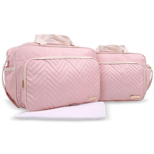 - A Bolsa Grande tem bolsos laterais, bolso frontal com zíper e fechamento principal em zíper.