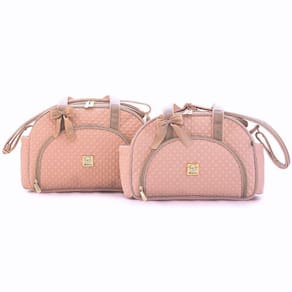 Conjunto kit bolsas maternidade bebe menina menino enxoval miellu - linha pópeti - bolsa m, bolsa p e trocador - 4 peças Cor: rose Kit bolsas maternidade miellu - linha pópeti - 3 peças Kit maternidade desenvolvido pela miellu com a finalidade de proporcionar praticidade, conforto, qualidade, estilo e durabilidade = exterior - fabricada em material sintético antialérgico externamente, material resistente, que não descasca e de fácil limpeza. - alças reforçadas com fita cadarço - alça tira-colo ombro - bolso frontal - bolso lateral dos dois lados da peça para facilitar o dia-a-dia - ampla abertura do compartimento principal proporcionado pela tampa central com dois cursores, o que facilita a organização e manuseios dos itens na bolsa. - ferragens em dourado - laço de cetim na alça. = interior - internamente forrada em bagum e nylon branco, garantindo higiene, facilidade de limpeza e durabilidade, sem agregar peso a bolsa. - porta mamadeira térmico embutido, mais praticidade e proteção para a mamadeira apenas na bolsa m - porta objetos no interior para facilitar a organização - bolso interno na tampa da abertura principal para cartões, chaves ou documentos Dimensões - 1 bolsa média - 36cm largura x 25cm altura x 17cm profundidade - 1 bolsa pequena 34cm largura x 23cm altura x 16cm profundidade - 1 trocador 68x39 = a bolsa média é equipada com porta mamadeira térmico embutido, a bolsa pequena não possui = Acompanha 2 laços de cetim Produto nacional, feito por brasileiros. Marca: Miellu Bolsas Ean: 7010615705330