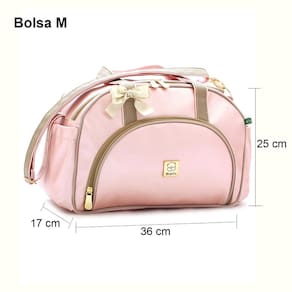 Kit conjunto bolsas maternidade bebe menina menino enxoval miellu - linha prática - bolsa m, bolsa p e trocador Kit bolsas maternidade miellu - linha prática Kit maternidade desenvolvido pela miellu com a finalidade de proporcionar praticidade, conforto, qualidade, estilo e durabilidade = exterior - fabricada em material sintético antialérgico externamente, material resistente, que não descasca e de fácil limpeza. - alças reforçadas com fita cadarço - alça tira-colo ombro com mosquetão fecho dourado de um dos lados, que possibilita retirada e acomodação no bolso lateral para evitar perdê-la. - bolso frontal - bolso lateral dos dois lados da peça para facilitar o dia-a-dia - ampla abertura do compartimento principal proporcionado pela tampa central com dois cursores, o que facilita a organização e manuseios dos itens na bolsa. - ferragens em dourado - laço de cetim na alça. = interior - internamente forrada em bagum e nylon branco, garantindo higiene, facilidade de limpeza e durabilidade, sem agregar peso a bolsa. - porta mamadeira térmico embutido, mais praticidade e proteção para a mamadeira apenas na bolsa m - porta objetos no interior para facilitar a organização - bolso interno na tampa da abertura principal para cartões, chaves ou documentos Dimensões - 1 bolsa média = 36cm largura x 25cm altura x 17cm profundidade - 1 bolsa pequena = 34cm largura x 23cm altura x 16cm profundidade - 1 trocador = 68x39 = a bolsa média é equipada com porta mamadeira térmico embutido, a bolsa pequena não possui = Acompanha 2 laços de cetim Produto nacional, feito por brasileiros. Marca: Miellu Bolsas