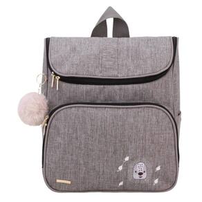 Mochila possui alças de costas e bolso frontal com fechamento em zíper