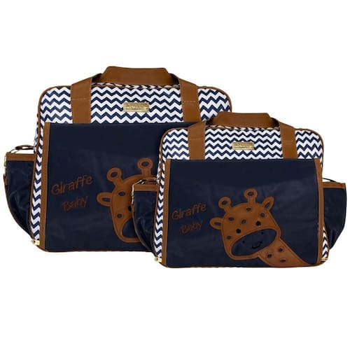 - A Bolsa Grande tem 02 bolsos laterais com fechamento em zíper, 01 bolso frontal, trocador embutido na parte frontal e fechamento principal em zíper.
