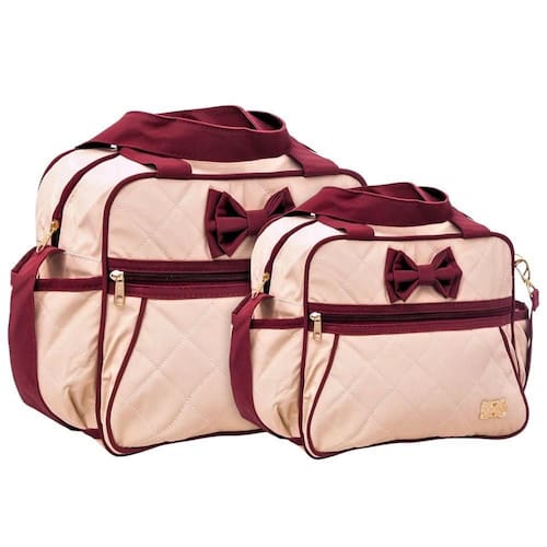 - A Bolsa Grande tem 02 bolsos laterais sem fechamento, 01 bolso frontal com fechamento em zíper e fechamento principal em zíper.