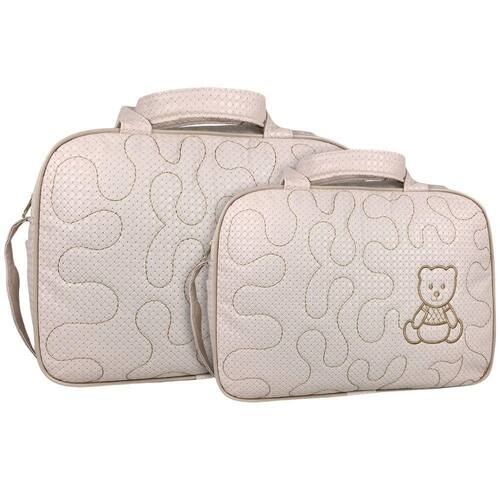 Kit Bolsas Maternidade Ursinho Bordado Baby Bege