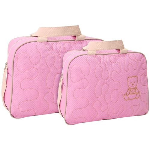 Kit Bolsas Maternidade Ursinho Bordado Baby Rosa