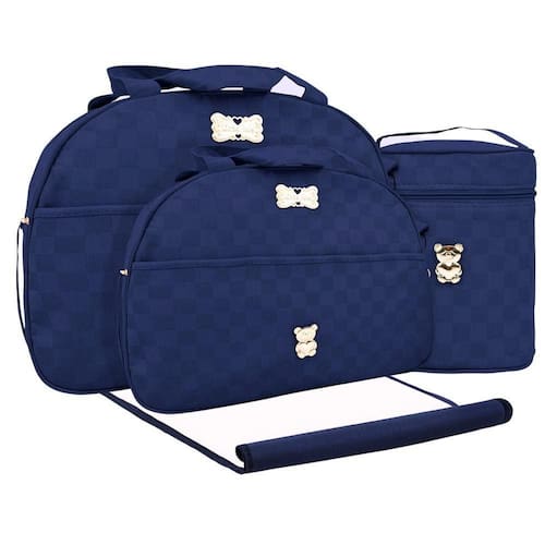 Kit Bolsas Maternidade Xadrez Baby Exclusive Gold Azul Marinho