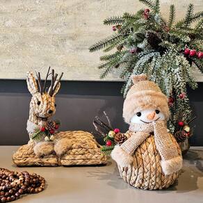 Kit de rena e boneco de neve em fibra natural Decoração natalina sustentável Enfeites de Natal rústicos Rena e boneco de neve artesanais