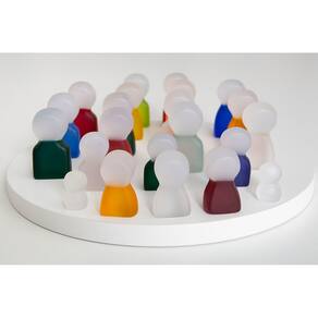 Kit Família Sistêmica Artesanal Família Sistêmica Artesanal, desenvolvida em resina por Patrícia Giambastiani com as mesmas cores das roupas dos tradicionais bonecos Playmobil, para Constelação Familiar. São 22 bonecos feitos à mão: 7 homens + 7 mulheres + 3 meninos + 3 meninas + 2 bebês. Produto exclusivo. O campo mórfico não acompanha o produto. *Fotos meramente ilustrativas.\n