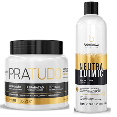 O Neutralizante Neutra Quimic da Borabella serve para evitar que processos químicos como Progressivas, alisamentos, colorações, descolorações continuem a danificar os fios, o couro cabeludo e o folículo capilar. Mesmo após a finalização de uma transformação, o ativo químico de Phs extremos continuam agindo sem necessidade dentro do fio, provocando assim danos desnecessários a estrutura do cabelo.