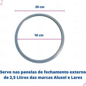 Borracha para panelas de pressão alusol ou lares com fechamento externo de 2,5 litros. As borrachas de silicone 100% atóxico, não ressecam, são melhores para o desempenho da sua panela, fazendo com que a vedação seja total O anel de vedação deve ser substituído sempre que ficar rígido ou quebradiço.