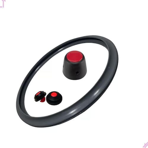 Nosso empenho é procurar o que há de mais atual e funcional no mundo culinário e para organização da sua casa, priorizando sempre a qualidade e a versatilidade dos produtos. Kit borracha peso e válvula para panelas : Marcolar / ramos / fortaleza / globo / alux Compatível com as panelas, de fechamento externo: -marcolar de 3 e 4,5 litros; -ramos de 4,5 e 6 litros; -fortaleza de 6 litros; -globo de 5 litros; -alux. Este kit contém: 1 borracha de silicone para panelas marcolar, ramos, fortaleza, globo ou alux de fechamento externo 1 válvula de segurança de borracha 1 peso pino preto e vermelho As borrachas de silicone 100% atóxico, não ressecam, são melhores para o desempenho da sua panela, fazendo com que a vedação seja total O anel de vedação deve ser substituído sempre que ficar rígido ou quebradiço. Medidas da borracha: Diâmetro externo: 24,5 cm Diâmetro interno: 21,5 cm; Fique atento à algumas dicas de uso: - jamais coloque a panela quente embaixo da água fria, esse choque térmico causa deformidades no alumínio; - mantenha sempre o pino central limpo, faça a limpeza com algo de metal, não use palito de dente, ele pode quebrar e você precisará trocar a peça; - prefira cozinhar em fogo baixo, o tempo é o mesmo e evita que a água seque mais rápido. Manutenção em dia = panela segura Gostou Esse produto pode ser seu aguardamos sua compra Marca: Não Informado