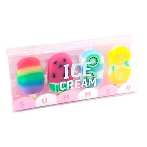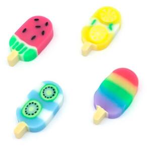 Kit Borrachas 4 Sorvete Picolé Borracha escolar em formato de picolés, seus amigos vão adorar. Com detalhes incríveis e super bem cuidados, o kit de borrachas contém 4 unidades de picolés em uma embalagem super fofa. Muito legal para quem ama objetos de papelaria fofa Lindas, as borrachas em formato de picolé deixarão o seu estojo ainda mais bonito e criativo.