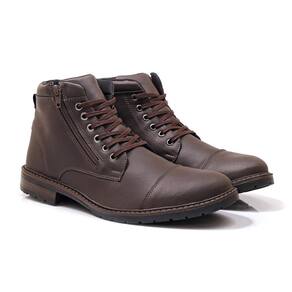 Kit Bota Coturno Masculino Zíper + Carteira Leve Dia a Dia - 37 - Marrom Cacau