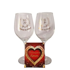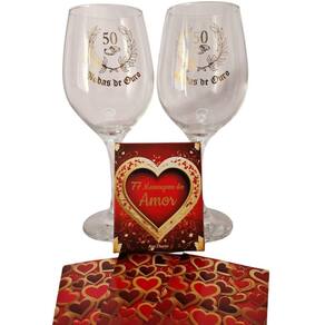 Kit Box do Amor + 2 Taças Bodas de Ouro 50 Anos Casal Kit 2 Taças Bodas de Ouro 50 Anos Casal Cristal Personalizada Vinho 490ml - Nadir Figueiredo - Barone