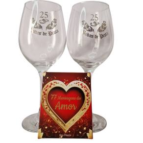 Kit 2 Taças Bodas de Prata 25 anos Casal Cristal Personalizada Vinho 490ml - Nadir Figueiredo - Barone