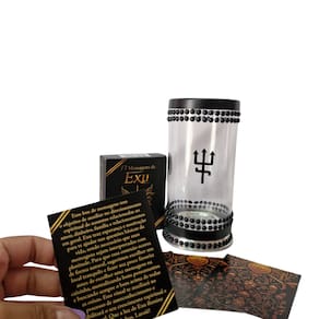 Kit Box Exu + Porta Vela Exu Pridente Preto. Conecte-se com a força, proteção e sabedoria de exu através deste kit exclusivo e poderoso, pensado para quem cultua, respeita e honra Exu.