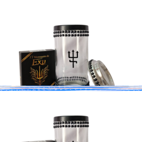 Porta Vela De Vidro Tridente Preto de Exu Decore seu altar ou espaço espiritual com esse Porta Velas. Feito em vidro resistente, com detalhes em pedras pretas e o poderoso símbolo do Tridente de Exu estampado, ideal para rituais, firmezas, oferendas ou simplesmente para manter uma vela acesa em honra a Exu em seu altar.