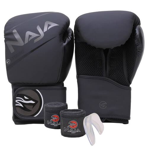 As luvas Naja Extreme são perfeitas para quem está começando nos treinos de Boxe e Muay-Thai. Com seu design chamativo, essas luvas proporcionam segurança e um ótimo encaixe para suas mãos durante o treino, deixando firme em suas mãos para que você possa desferir os golpes mais fortes. São produzidas com a tecnologia HSA que garantem maior absorção dos impactos, evitando lesões e fazendo seu treino render muito mais. A luva é destinada para praticantes iniciantes e intermediários que buscam a evolução no seu desempenho sem abrir mão do conforto e qualidade. Adquira Já o seu Kit Naja no Mundo do Lutador, A loja dos Campeões!