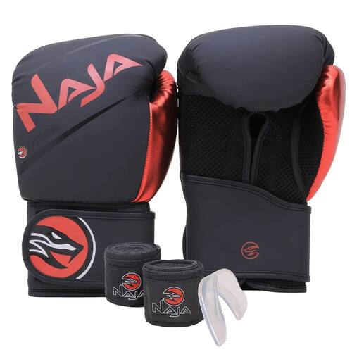 As luvas Naja Extreme são perfeitas para quem está começando nos treinos de Boxe e Muay-Thai. Com seu design chamativo, essas luvas proporcionam segurança e um ótimo encaixe para suas mãos durante o treino, deixando firme em suas mãos para que você possa desferir os golpes mais fortes. São produzidas com a tecnologia HSA que garantem maior absorção dos impactos, evitando lesões e fazendo seu treino render muito mais. A luva é destinada para praticantes iniciantes e intermediários que buscam a evolução no seu desempenho sem abrir mão do conforto e qualidade. Adquira Já o seu Kit Naja no Mundo do Lutador, A loja dos Campeões!