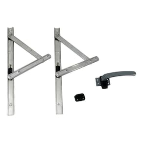 Kit Braço Janela Maxim-ar 30cm + Fecho Alavanca Natural Kit Braço Janela Maxim-ar 30cm + Fecho Alavanca Natural - Braço de sobrepor em alumínio para janelas maxim-ar da linha madeira ou alumínio. Produzido com material alta qualidade, possui freio com regulagem, acabamento com pintura eletrostática ( Não enferruja ). Abertura suave e com angulo de até 90. O preço é do PAR. Lado esquerdo e direito.