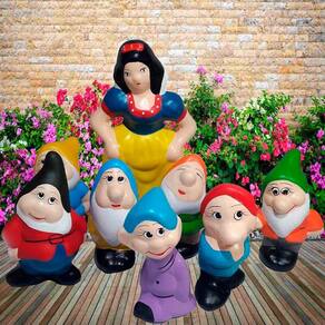 Branca de neve, a bela princesa de nobre coração, é adorada por todas as criaturas do reino, menos uma: a rainha, sua invejosa madrasta. Quando o espelho mágico declara branca de neve como sendo a mais bela de todas, ela foge para a floresta, onde conhece sete adoráveis anões: dunga, mestre, feliz, dengoso, soneca, zangado e atchim. Mas quando a rainha engana branca de neve e a faz morder uma maçã envenenada, somente a magia de um beijo do verdadeiro amor poderá salvá-la. Feito em cerâmica da melhor qualidade, são pintados artesanalmente com pintura reforçada para suportar sol e chuva com durabilidade. Deixe sua casa e jardim com um clima agradável, alegre e descontraído, sendo também uma ótima opção de presente. Dimensões: - branca de neve grande : altura: 23 cm x largura: 19 cm. - anões: altura: 17 cm x largura: 10 cm Características do produto: - cerâmica ecológica de alta qualidade com pintura artesanal que suporta sol/chuva em áreas internas e externas. - produzido por artesões profissionais seguindo um padrão de qualidade que atenda o gosto dos nossos clientes Cuidados: - recomendamos o uso de pano levemente umedecido para sua limpeza. Garantia do produto: - o produto é muito bem acomodado dentro da caixa, e super embalado para evitar quebras, ainda assim possuímos um sistema de garantia e troca. Imagens meramente ilustrativas - produto artesanal, podendo variar de cor e/ou tonalidade