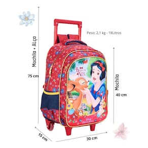 Mochila com rodinhas branca de neve disney 16 - elegância e encanto para o dia a dia das pequenas